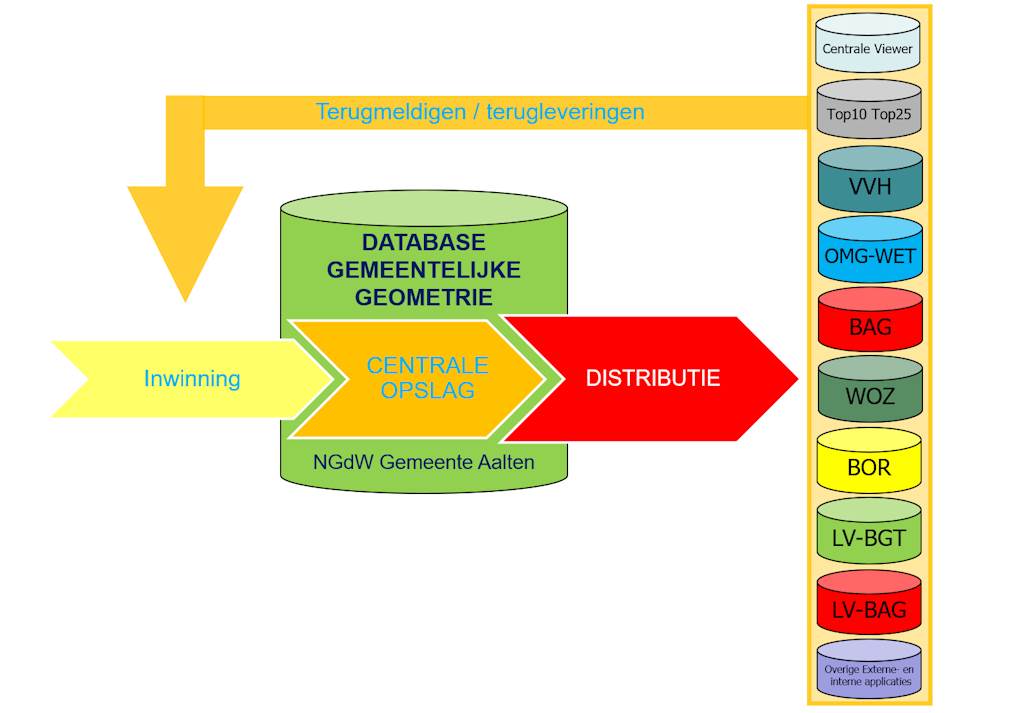 Gewerkt wordt vanuit de visie waarin integraal objectenbeheer centraal staat. Afnemers zoals de LV-BGT zijn hieraan ondergeschikt gemaakt. Dat moet ook, immers beheert een gemeente het fijnste detailniveau. Alle bronhouders en belanghebbenden komen op gemeentelijk niveau samen. Het is daarom uiterst belangrijk om daar het zwaartepunt van alle informatie te leggen. Dubbele of meervoudige opslag is hier uit den boze!